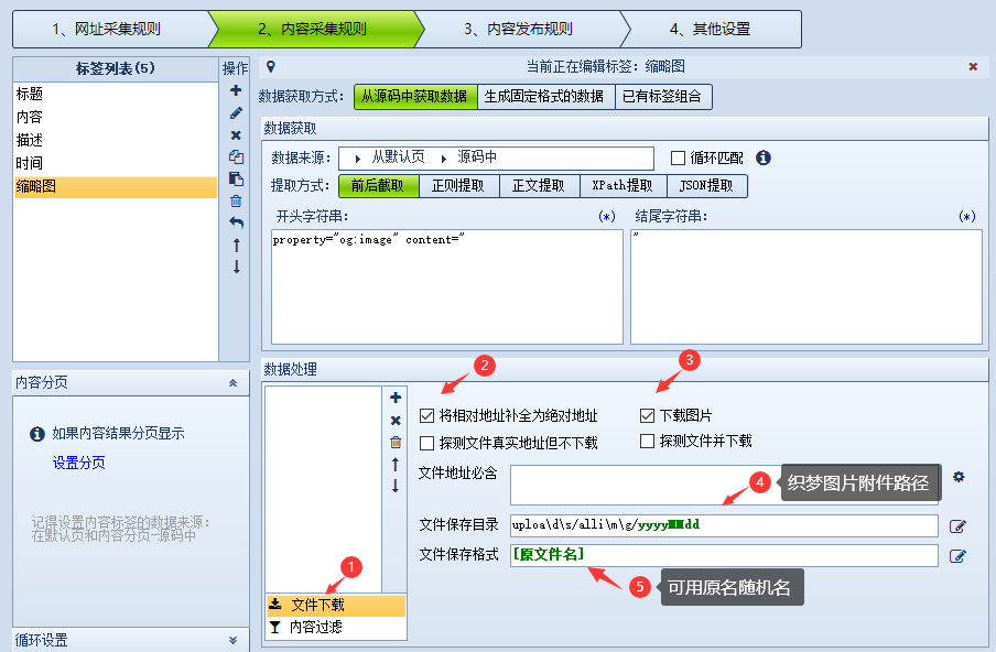 4、火車頭任務第4步【其他設置】文件圖片下載設置如下uploa\d\s/alli\m\g/yyyyMMdd