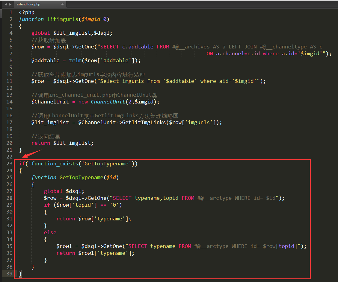 這是因為模板里調用了GetTopTypename()這個函數,而你程序中沒有這個函數引起的報錯,我們添加這個函數進去就可以了。