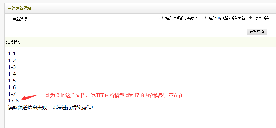 那是因為有文檔使用了以前添加的內容模型和欄目,而內容模型又刪除了,文檔還在,生成全站或者生成文檔時就會提示“讀取頻道信息失敗,無法進行后續操作!”