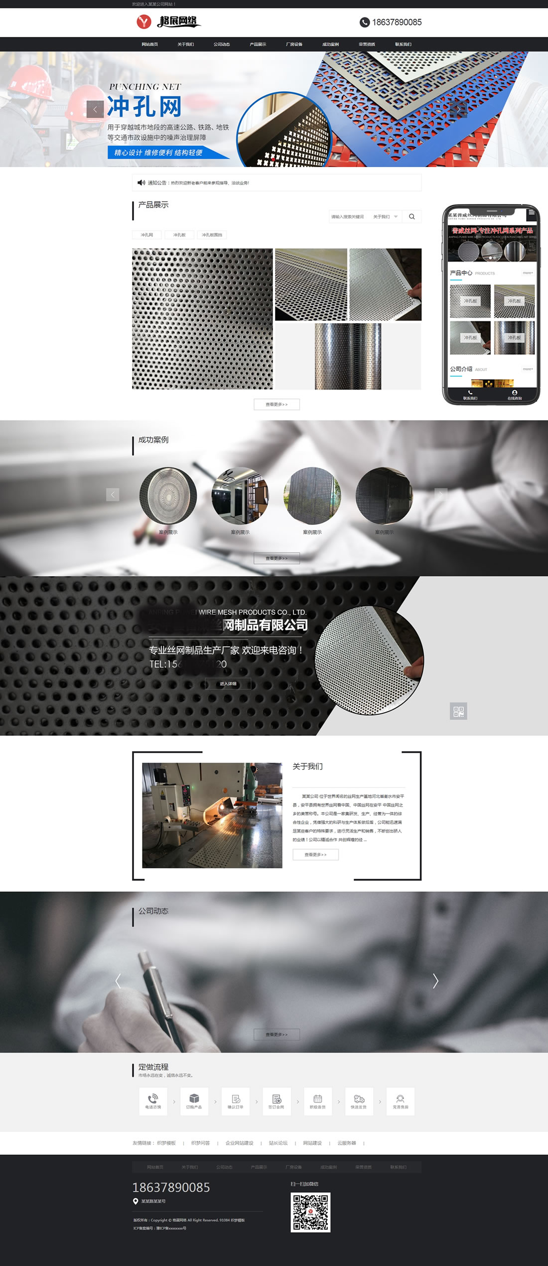 沖孔板金屬絲網(wǎng)類網(wǎng)站織夢(mèng)模板(帶手機(jī)端)