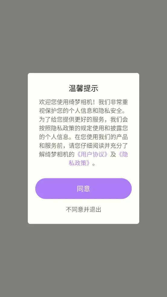 1、首先在本網(wǎng)站安裝綺夢相機(jī),同時(shí)請仔細(xì)閱讀并了解相關(guān)的用戶協(xié)議與隱私政策。