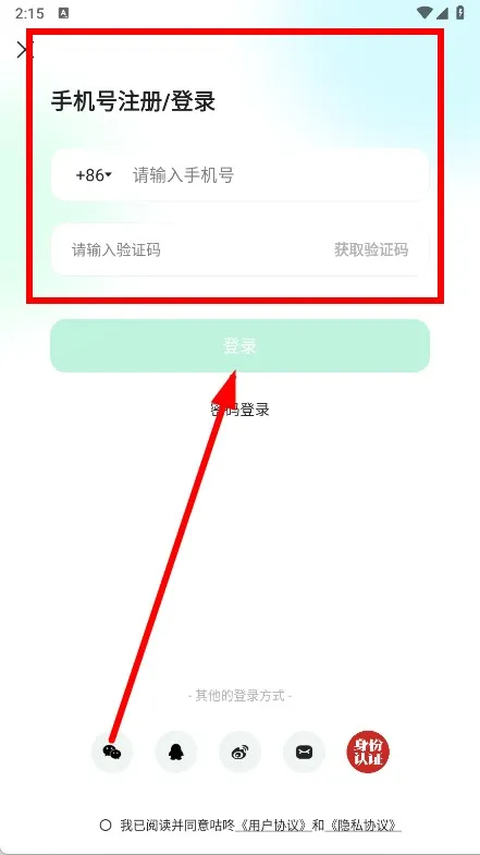 4、輸入手機號碼,填寫收到的驗證碼,點擊登錄按鈕,就能完成注冊流程。