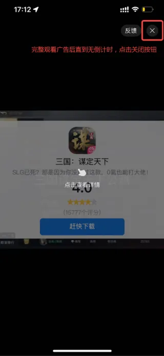3、完整看完廣告,點擊關閉按鈕即可免費加速
