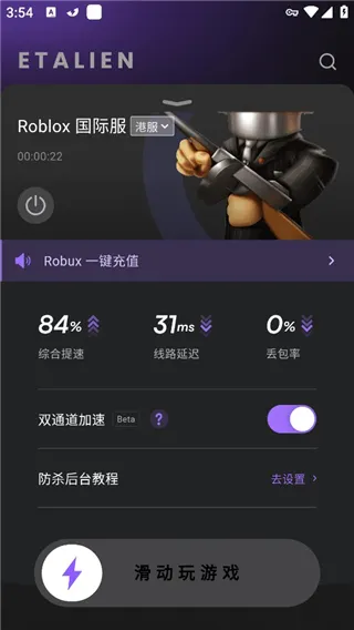 依靠“線路智能調節系統”,外星人加速器可實時優化玩家的網絡環境,確保玩家時刻處于優質的高速線路,讓玩家感受到“又快又穩”的加速效果。