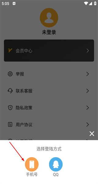 3、點(diǎn)擊登錄彈出選擇登錄方式的窗口,窗口提供手機(jī)號(hào)和QQ兩種登錄選項(xiàng),可挑選合適的方式準(zhǔn)備進(jìn)行登錄。