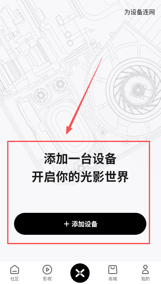 4、配置硬件設備:當你拿到新設備,只需在“愛機”頁面選擇添加設備,然后根據提示完成網絡連接,就能開啟你的大屏觀影了。