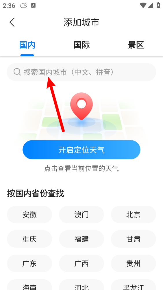 4、然后輸入國內所需添加的城市。