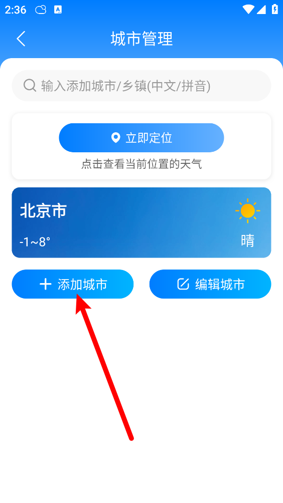 3、如圖,選擇并點擊"添加城市"。