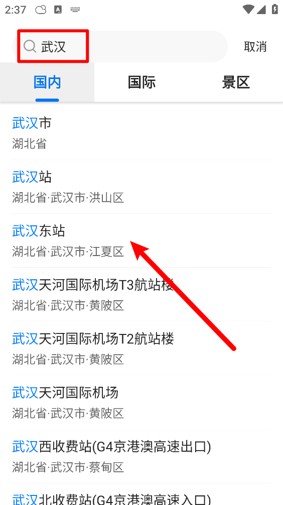 5、如圖所示,一鍵點擊所需城市地點。