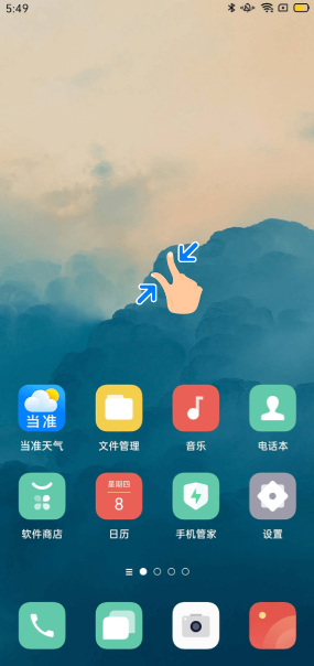 1、在桌面上“長按” 或“雙指合攏”。