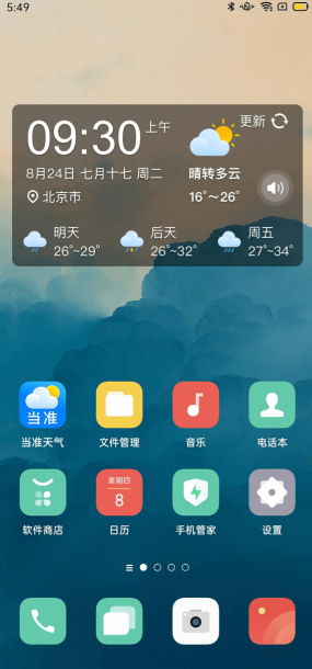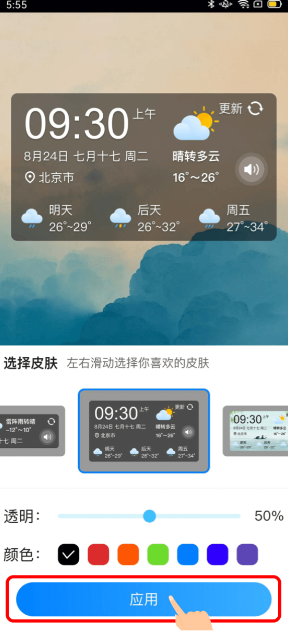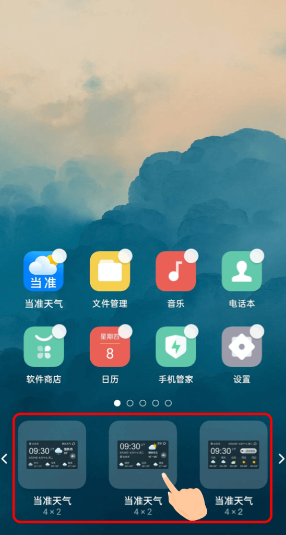 3、找到“當準天氣”應用,挑選你心儀的小插件,將其移動到桌面的空白位置。