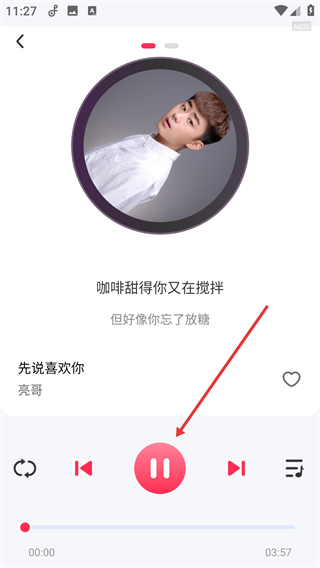 4、在歌曲播放界面,可通過(guò)底部控制欄的按鈕(如暫停鍵)管理歌曲播放狀態(tài)。