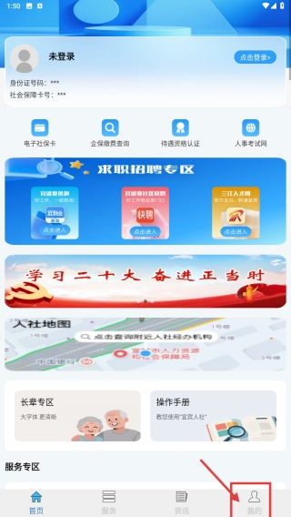 你可以這樣操作:先打開宜賓人社應用,接著點擊頁面底部的“我的”選項,就能進入個人中心頁面了。
