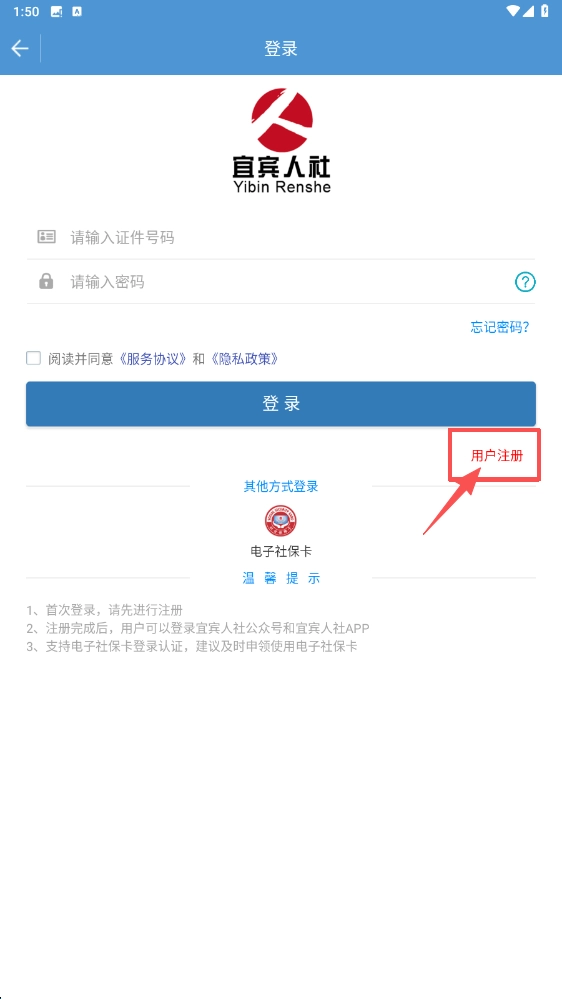在登錄界面,選擇用戶注冊選項,即可進入用戶注冊頁面。