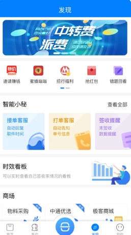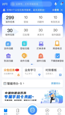 打開掌中通,首頁可以看到收件、派件等各種功能。