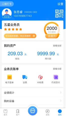 在我的界面,可以看到自己的資產和業務賬單等信息。