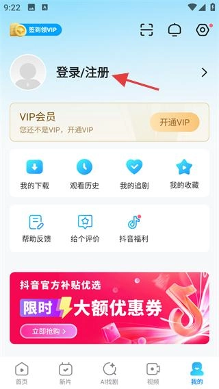 打開人人視頻的首頁后,點擊底部的【我的】選項,即可進入個人中心頁面。