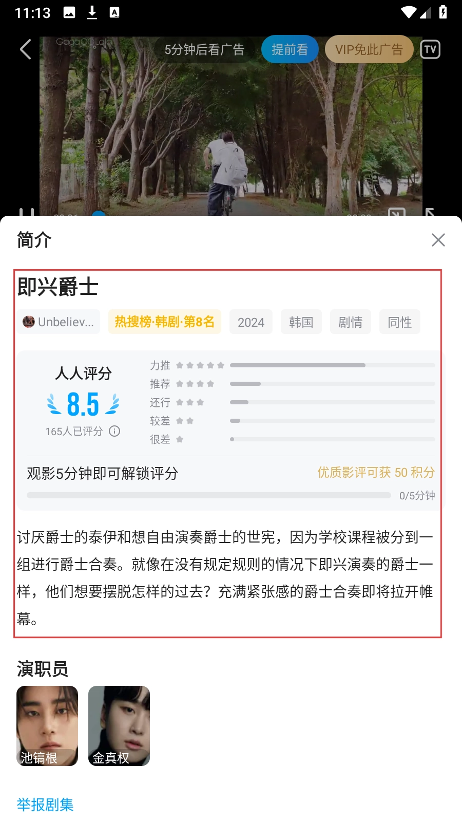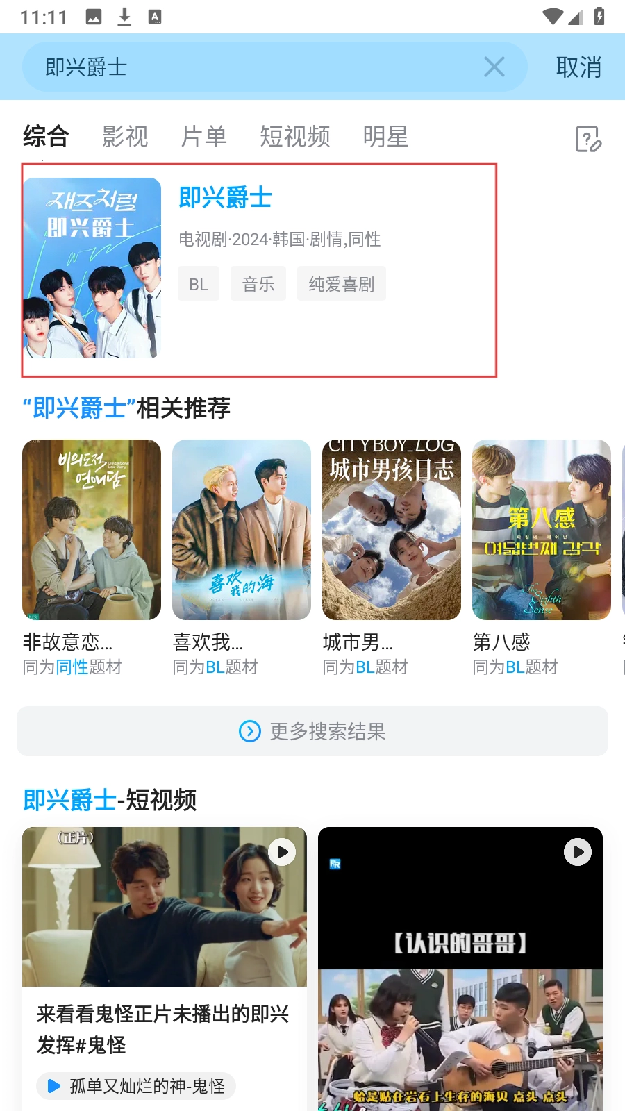 在搜索框中輸入“即興爵士”,點擊搜索按鈕后,在呈現(xiàn)的搜索結(jié)果里篩選出2026年的韓國劇集,接著點擊該劇集條目進入其詳情頁面。