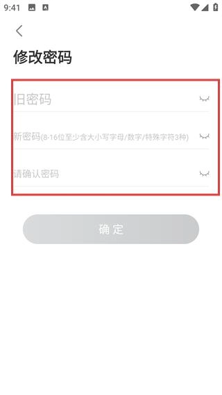 進入【修改密碼】頁面后,按順序填寫【舊密碼】【新密碼】以及【請確認(rèn)密碼】這幾個欄目。