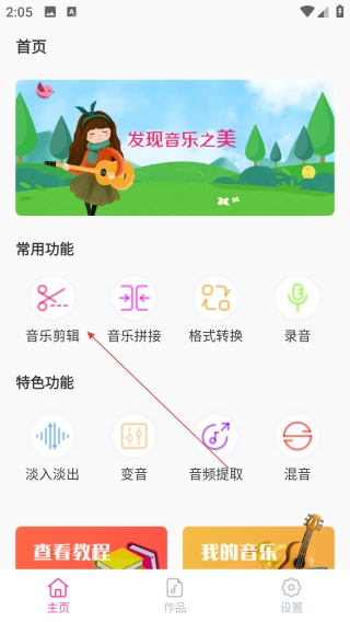 打開音樂剪輯精靈,點擊【音樂剪輯】。