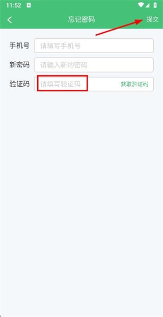 在忘記密碼頁面填寫驗證碼后,點擊提交按鈕即可完成密碼重置流程。
