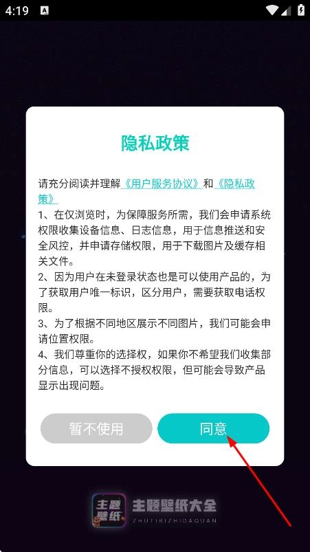 在隱私政策的彈窗中,點擊同意,進入軟件。