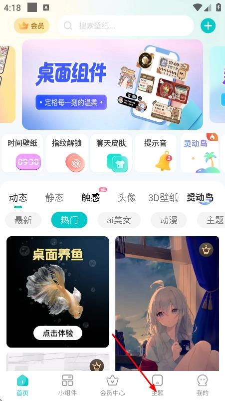 在軟件主頁面,點擊主題,進入主題廣場頁面。
