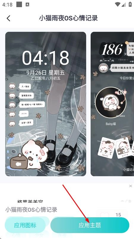 在主題詳情頁面,點擊應用主題,即可應用該主題。