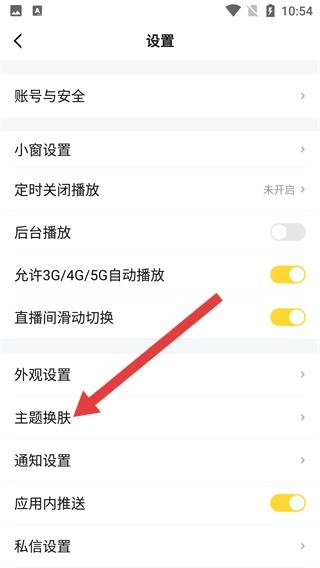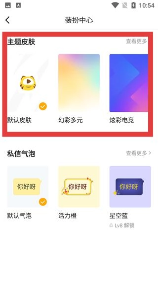 在設置頁面中,找到并點擊【主題換膚】選項,即可進入裝扮中心界面。