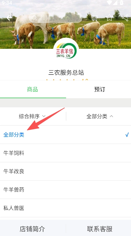 支持在商城中通過分類查找所需物資,您只需點擊“全部分類”,從中選擇對應的品類,即可瀏覽牛羊相關的各類物資。
