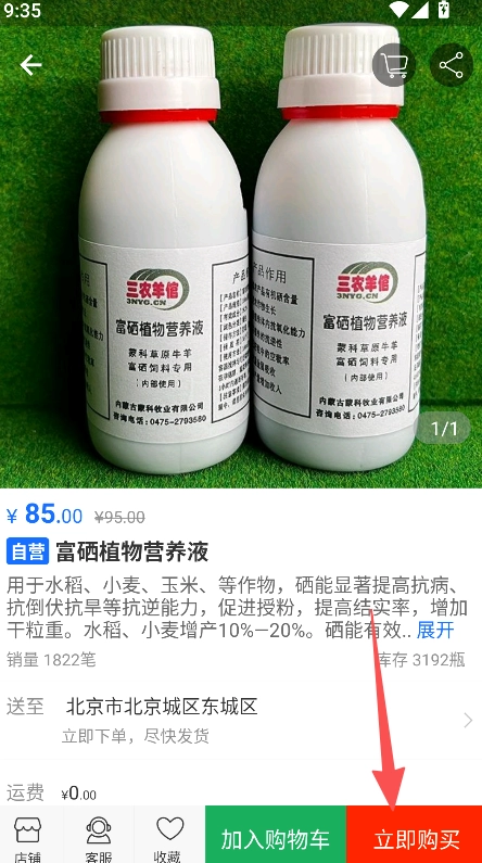 點擊目標商品進入詳情頁,再點擊立即購買即可完成商品采購。