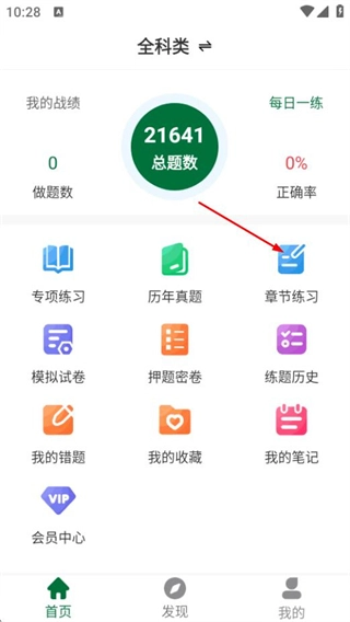 在首頁點擊章節(jié)練習選項,進入章節(jié)練習分類頁面。