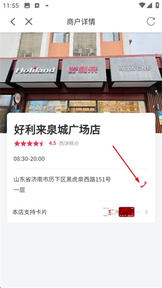 在商戶詳情頁點擊電話按鈕,就能聯系該商家咨詢相關問題。