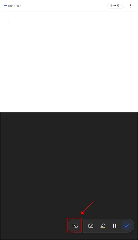 點(diǎn)擊下方的“懸浮字幕”按鈕后,轉(zhuǎn)寫(xiě)翻譯的文字會(huì)自動(dòng)縮小并顯示在“懸浮字幕”框內(nèi)。