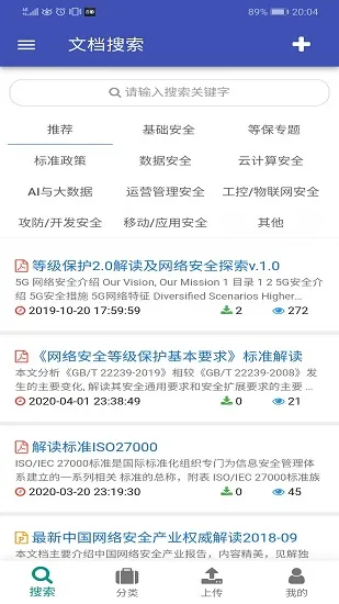 1、支持基礎(chǔ)安全、等保專題、數(shù)據(jù)安全、云計算安全等相關(guān)數(shù)據(jù)文檔的查看。