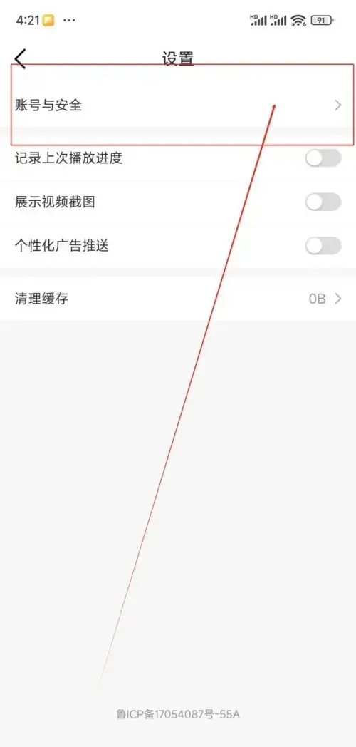 3.在設置界面中點擊賬號與安全的選項