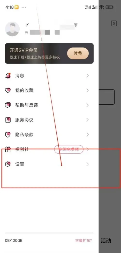2.在左側彈出的個人界面中點擊設置選項
