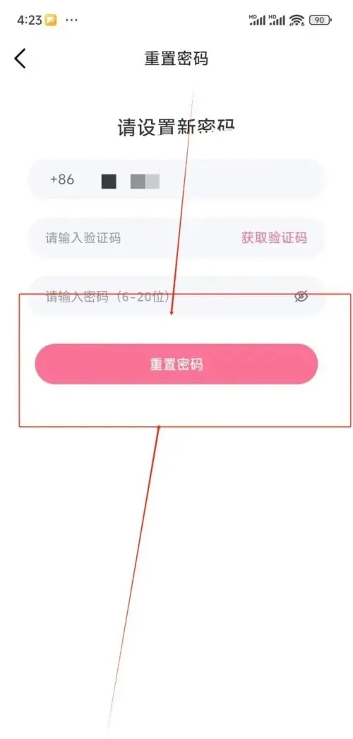 5.進入到重置界面中輸入驗證碼和密碼后點擊重置密碼即可