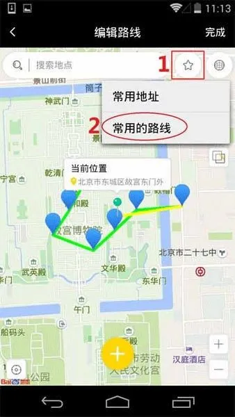 3、 點擊五角星圖標,展開菜單,選擇常用的路線;