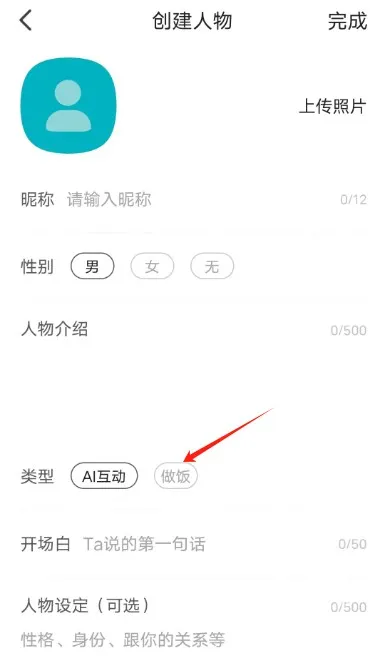 Talkmaker用戶開啟做飯模式的操作很簡單,只需在創建聊天人物時,于系統提供的類型選項中選擇“做飯”即可。需要注意的是,若用戶選擇的類型是“AI互動”,則無法進入做飯模式。不少用戶不清楚Talkmaker的做飯功能位置,實際上該功能就在創建人物界面的類型選擇欄里,點擊對應選項就能進入做飯模式了。