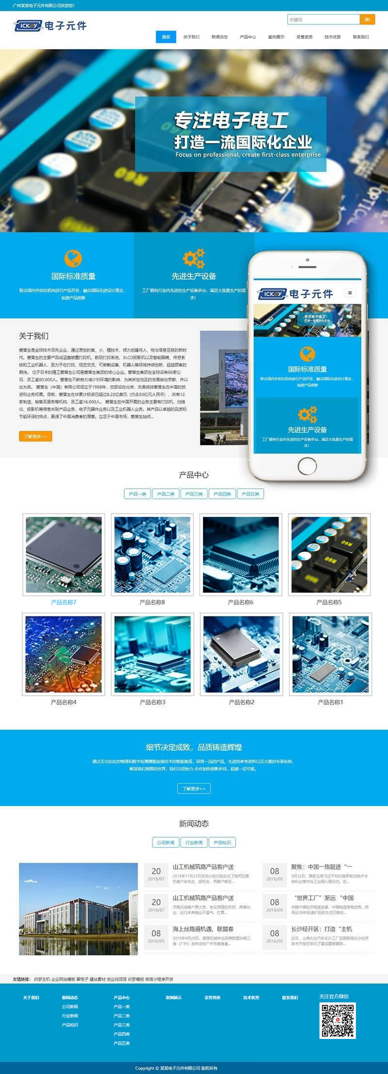 電子元件電路板類網(wǎng)站織夢模板(自適應(yīng)手機端)