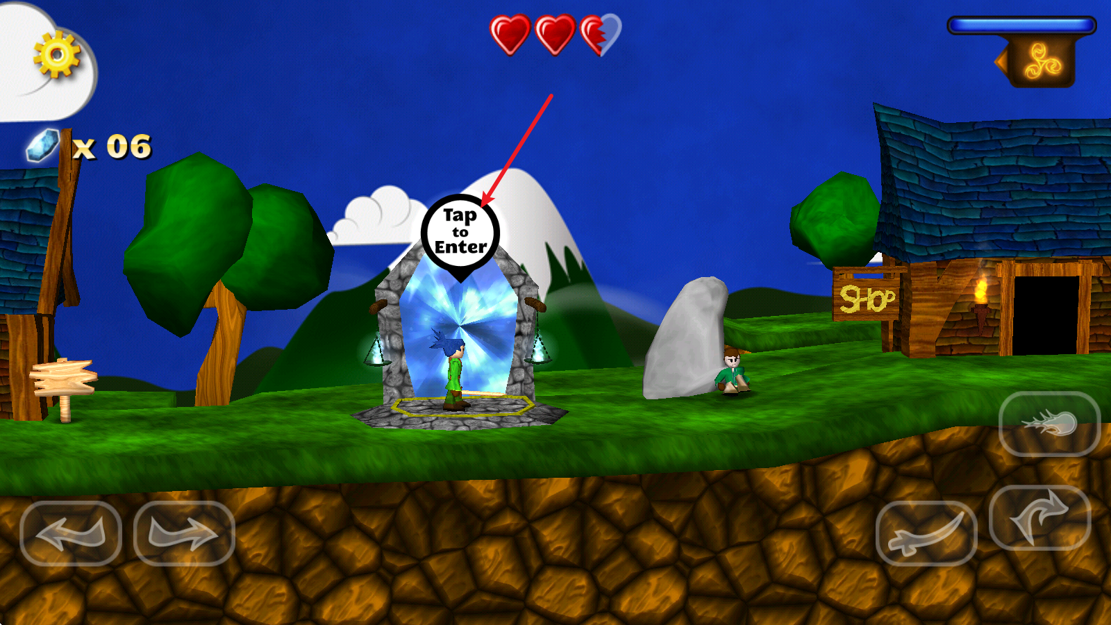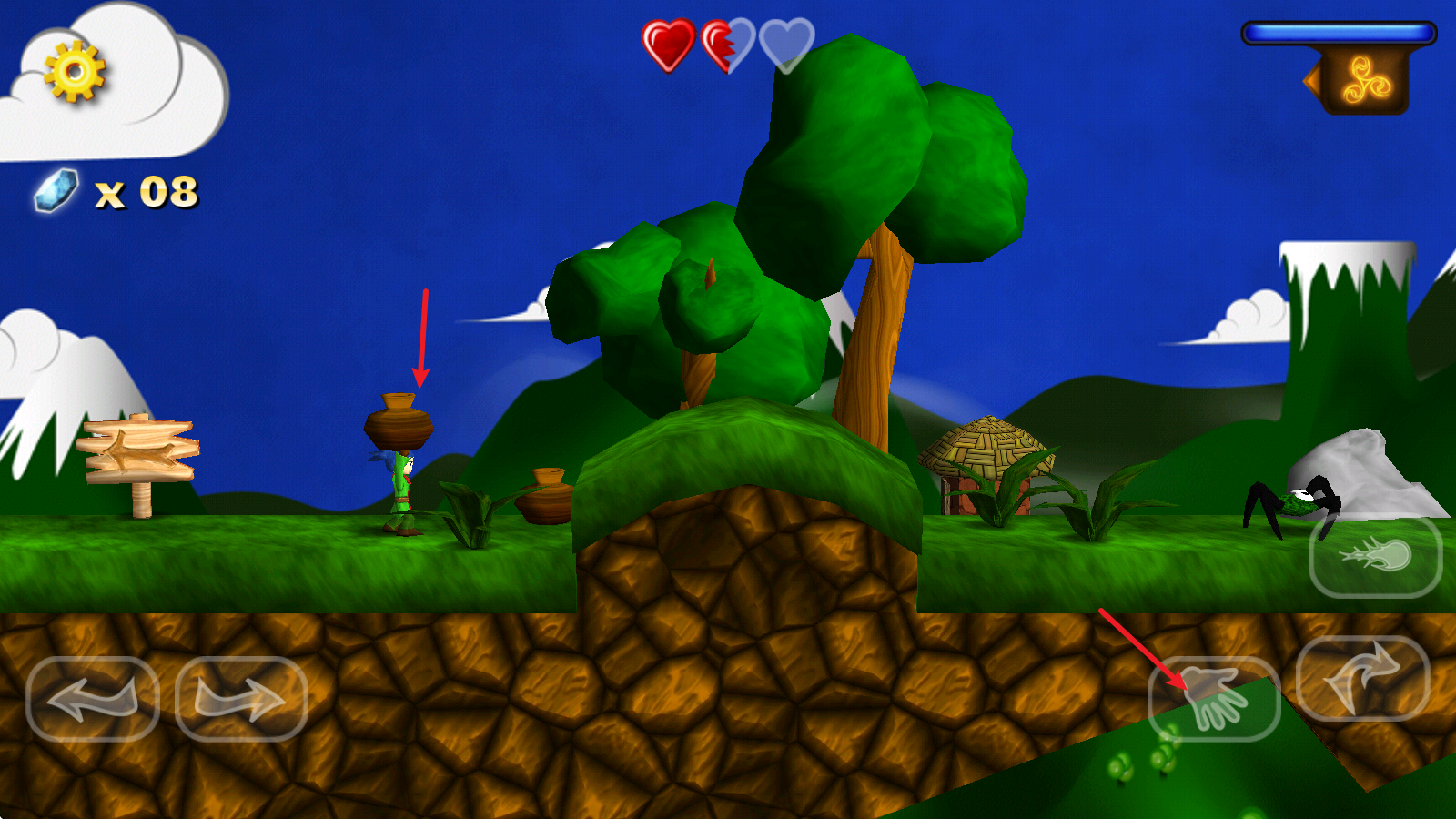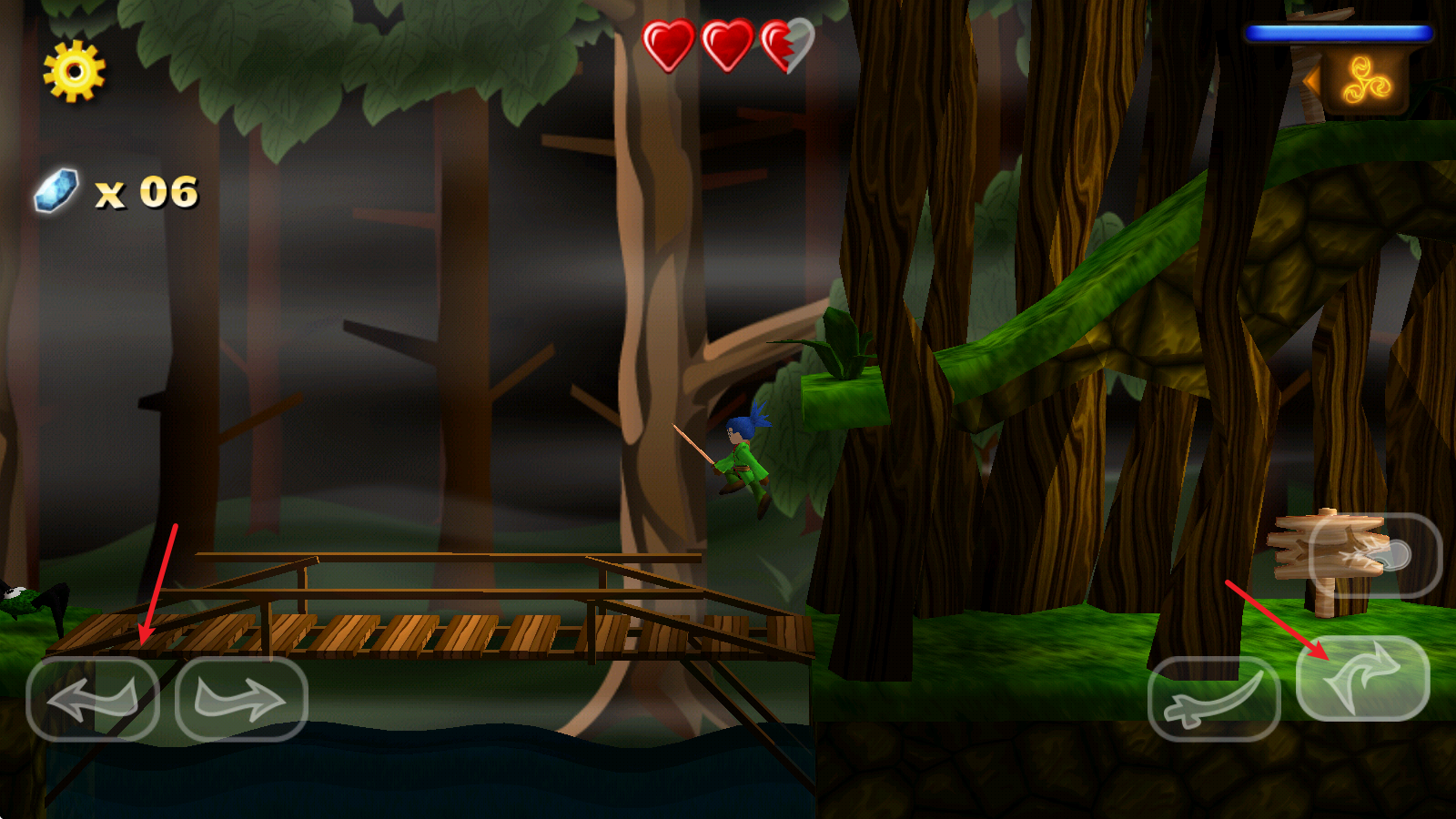 2、隨后按照地圖的指引,我們進(jìn)入關(guān)卡內(nèi)部,左側(cè)箭頭用于控制移動(dòng),右側(cè)箭頭用于控制跳躍,長(zhǎng)按的話(huà)能夠跳得更高。