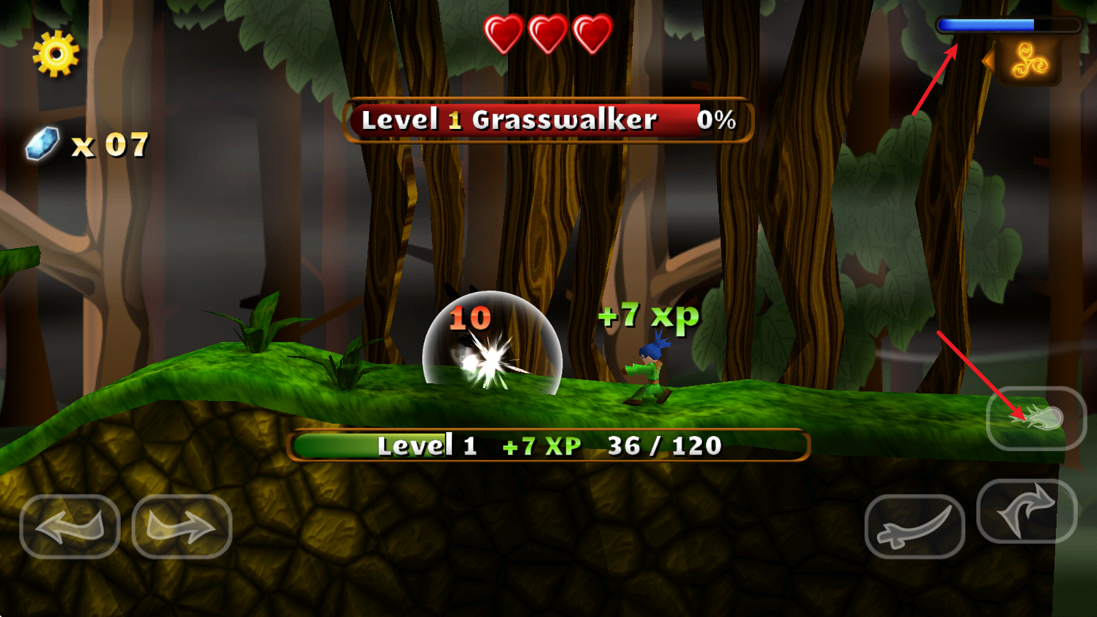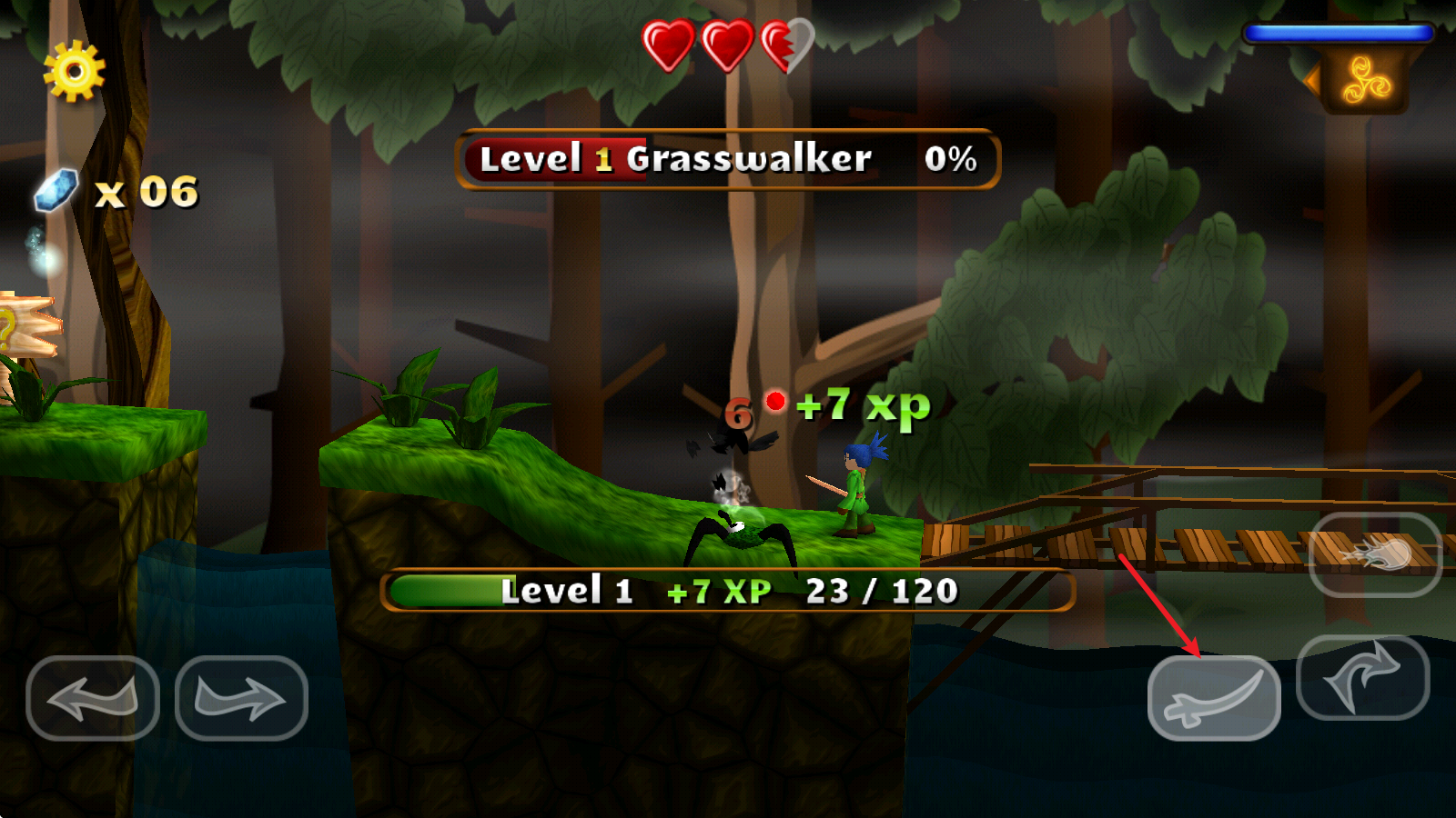 4、靠近敵人后,點(diǎn)擊劍按鈕進(jìn)行攻擊,消滅敵人可以獲得經(jīng)驗(yàn)。