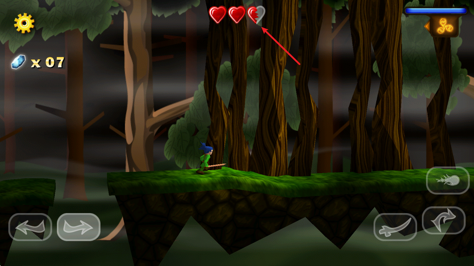 6、上方會(huì)顯示人物的血條,被敵人擊中或者掉落懸崖都會(huì)扣減。