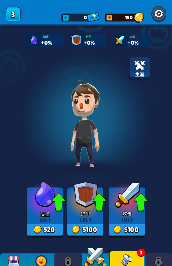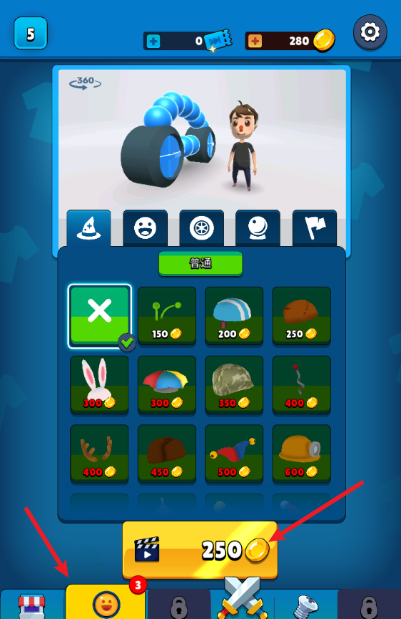 1、主界面中點擊左下角的笑臉,在這里可以消耗金幣解鎖隨機皮膚。