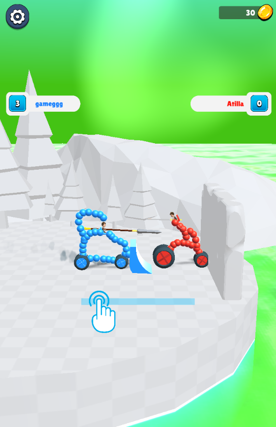 2、畫好之后就可以開始挑戰,左右拖動即可控制戰車進行戰斗。