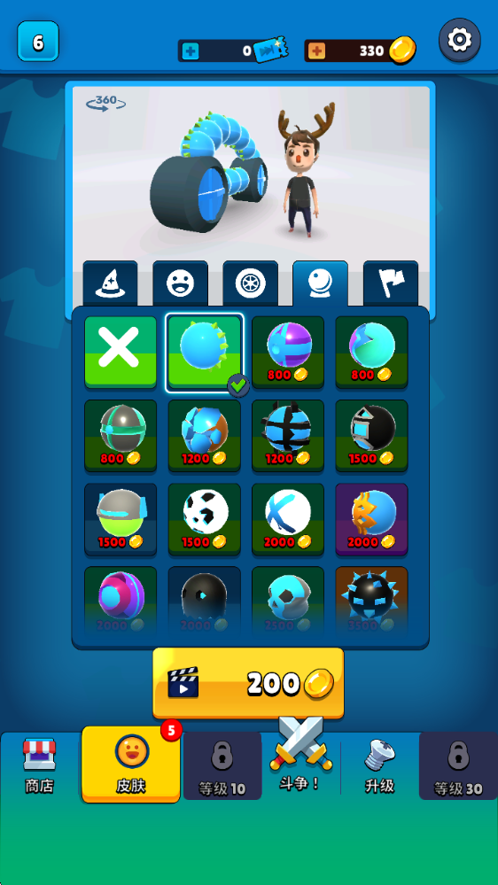3、游戲內有著各種豐富的皮膚,可以自由的裝扮角色、小車和旗幟,打造出一輛屬于你的個性戰車,讓挑戰過程更加精彩。
