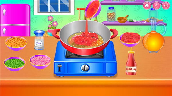 1、尋找各種廚房用具,烹飪不同的食材,料理出屬于你的美味食物,并同時(shí)解鎖成就!
