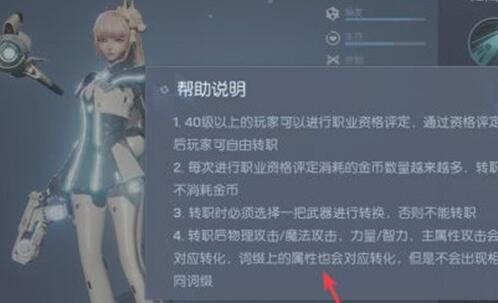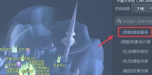 4、在對(duì)話界面,點(diǎn)擊右側(cè)的轉(zhuǎn)職的選項(xiàng)。