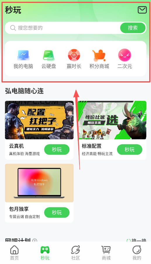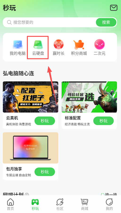 使用這款軟件的操作十分簡(jiǎn)便,主界面上清晰展示著各類游戲與云電腦配置選項(xiàng),你只需瀏覽查找,然后點(diǎn)擊自己感興趣的項(xiàng)目下方的“秒玩”按鈕就能開始體驗(yàn)了。